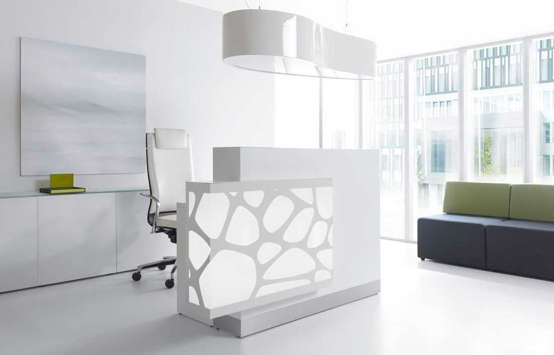 This reception desk collection allows you to program the backlighting color through the RGB spectrum to highlight your branding color or change the vibe in your lobby at will.