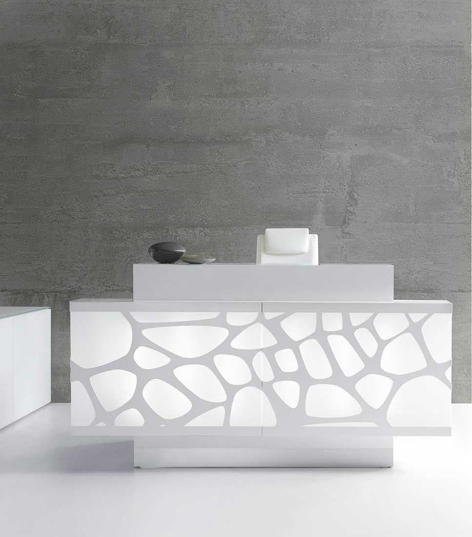 This reception desk collection allows you to program the backlighting color through the RGB spectrum to highlight your branding color or change the vibe in your lobby at will.