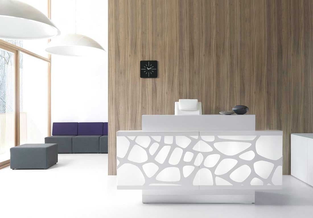 This reception desk collection allows you to program the backlighting color through the RGB spectrum to highlight your branding color or change the vibe in your lobby at will.