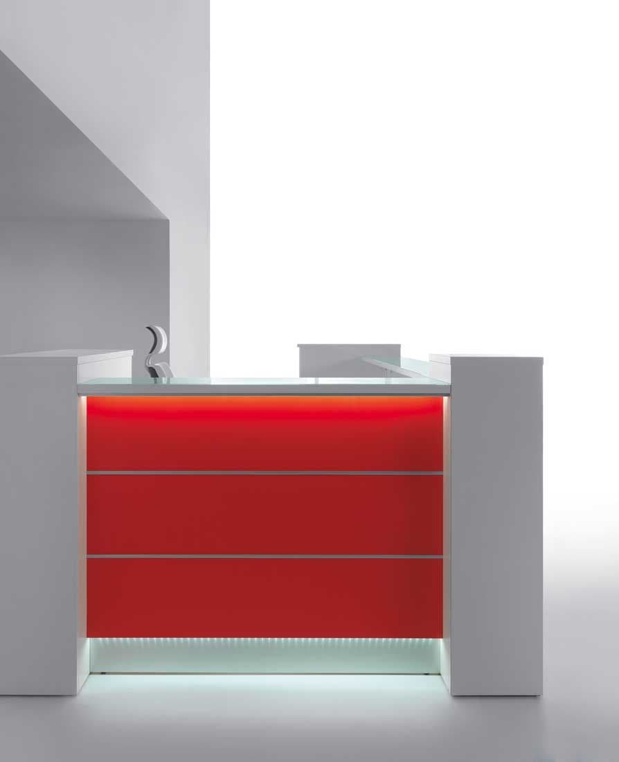 LED illumination at the full length of the reception desk.