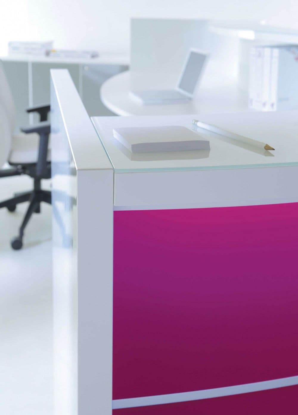 LED illumination at the full length of the reception desk.