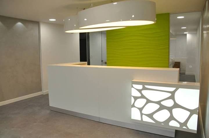 This reception desk collection allows you to program the backlighting color through the RGB spectrum to highlight your branding color or change the vibe in your lobby at will.