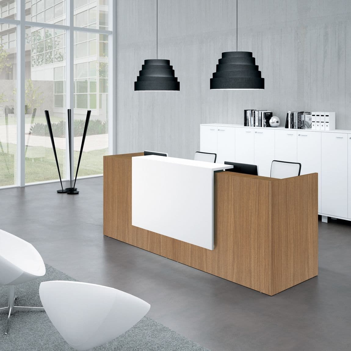 This sleek reception desk collection is modular which allows us to configure it in different ways to address your functional requirements and fit within your space.