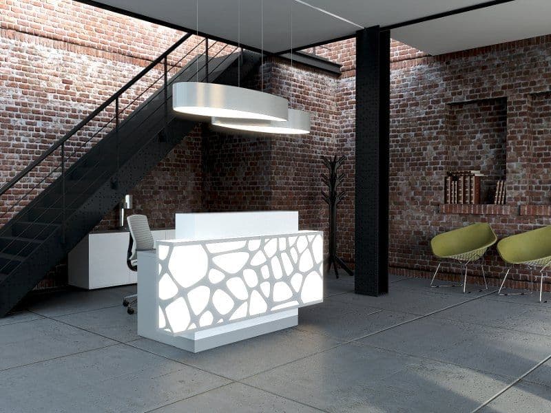 This reception desk collection allows you to program the backlighting color through the RGB spectrum to highlight your branding color or change the vibe in your lobby at will.