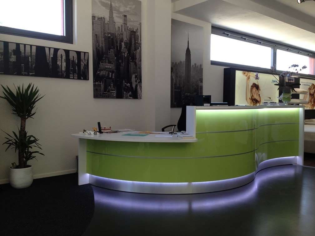 LED illumination at the full length of the reception desk.