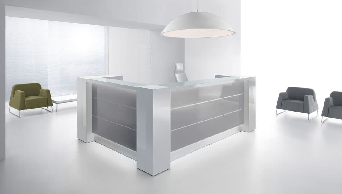 LED illumination at the full length of the reception desk.