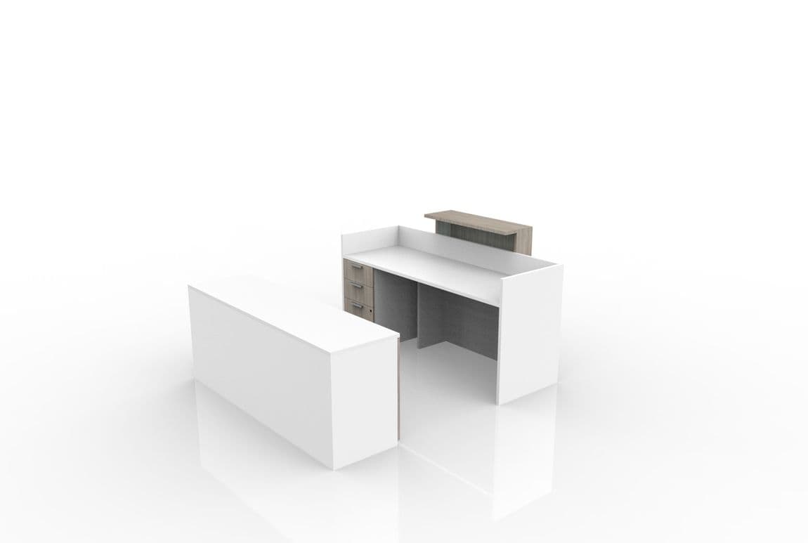 This stylish office reception desk collection is modular which allows us to configure it in different ways to address your functional requirements and fit within your space.