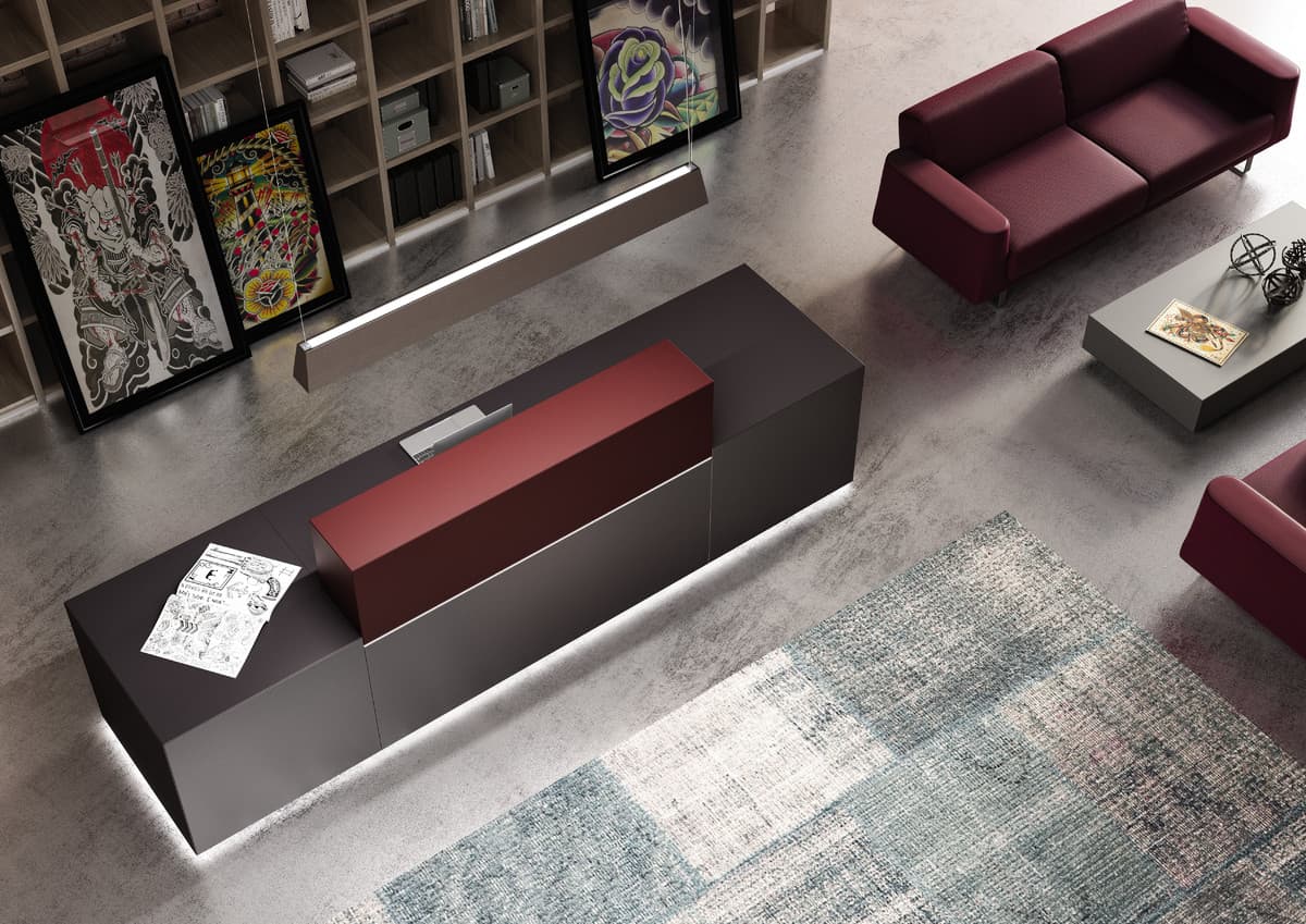 This beautiful office reception desk collection is modular which allows us to configure it in different ways to address your functional requirements and fit within your space.