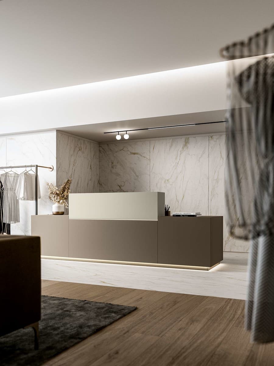 This beautiful office reception desk collection is modular which allows us to configure it in different ways to address your functional requirements and fit within your space.
