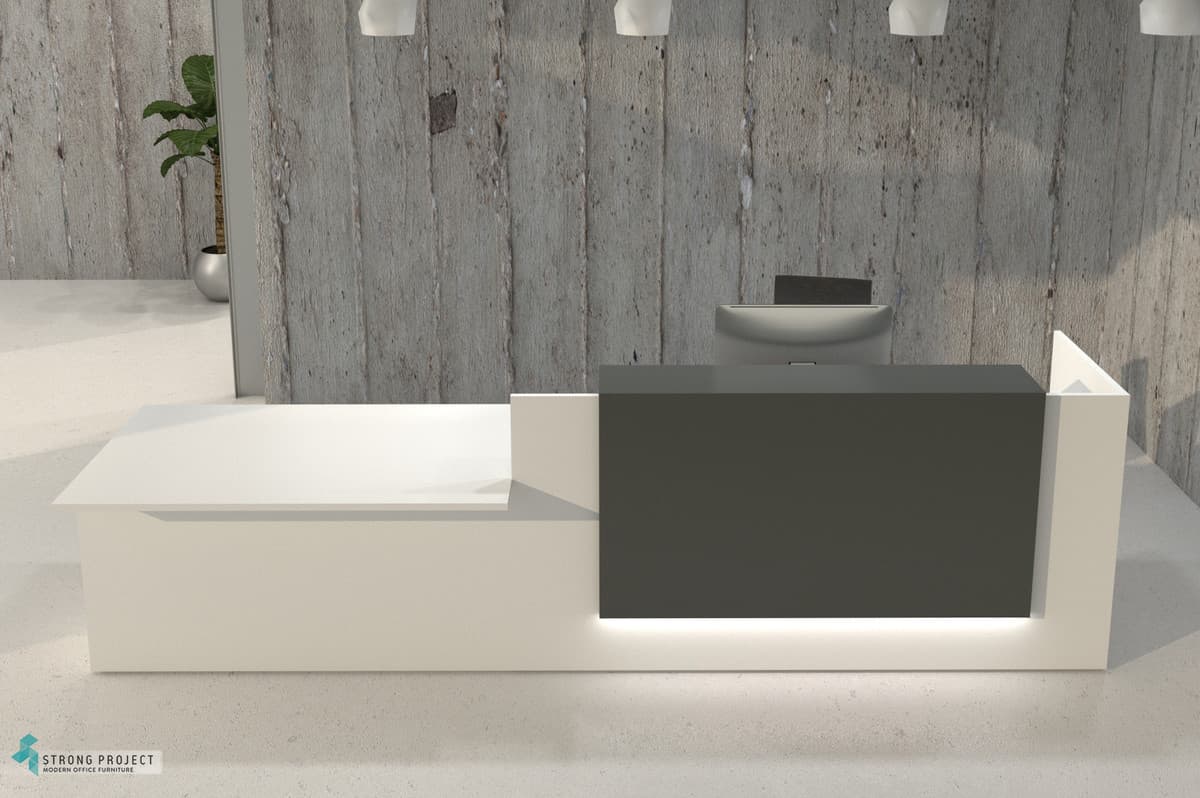 This stylish office reception desk collection is modular which allows us to configure it in different ways to address your functional requirements and fit within your space.