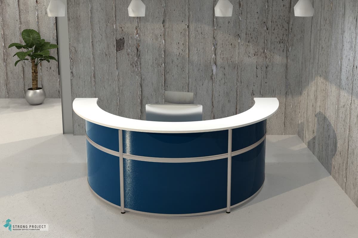 We are featuring 8 different colors for this Modern Reception Desk design which can be ordered in a Gloss Finish or Matte Finish. We are showing them in Gloss here. If you have a specific Branding Color that you’d like to order your Reception Desk in, select any solid laminate color from Pionite, Wilsonart or Formica and we will customize the color for you! These units come in different sizes and configurations to fit your space.