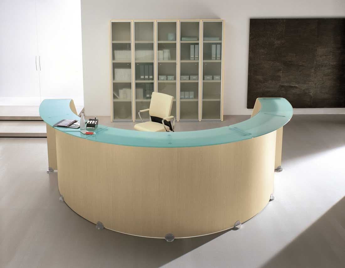 This curved reception desk collection features modular components with rounded lines and straight geometries which allows us to configure it in different ways to address your functional requirements and fit within your space.