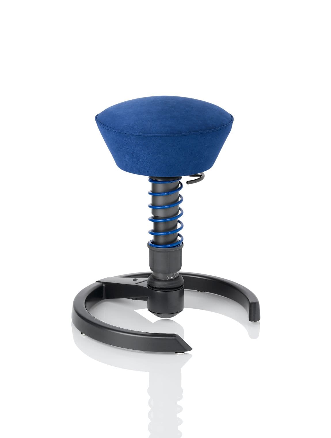 Engage your core throughout the workday and experience multi-dimensional movement with this unique, modern seating design for today's workplace! Color-coordinated ultrasuede seat cover and matching color springs: orange, blue and red. (gray and black ship with standard anthracite colored spring). This innovative motion seating design ships standard with anthracite base (charcoal gray). Custom Embroidering available for seat cushions (See Tesla Example under 'Details'). Not available with casters.