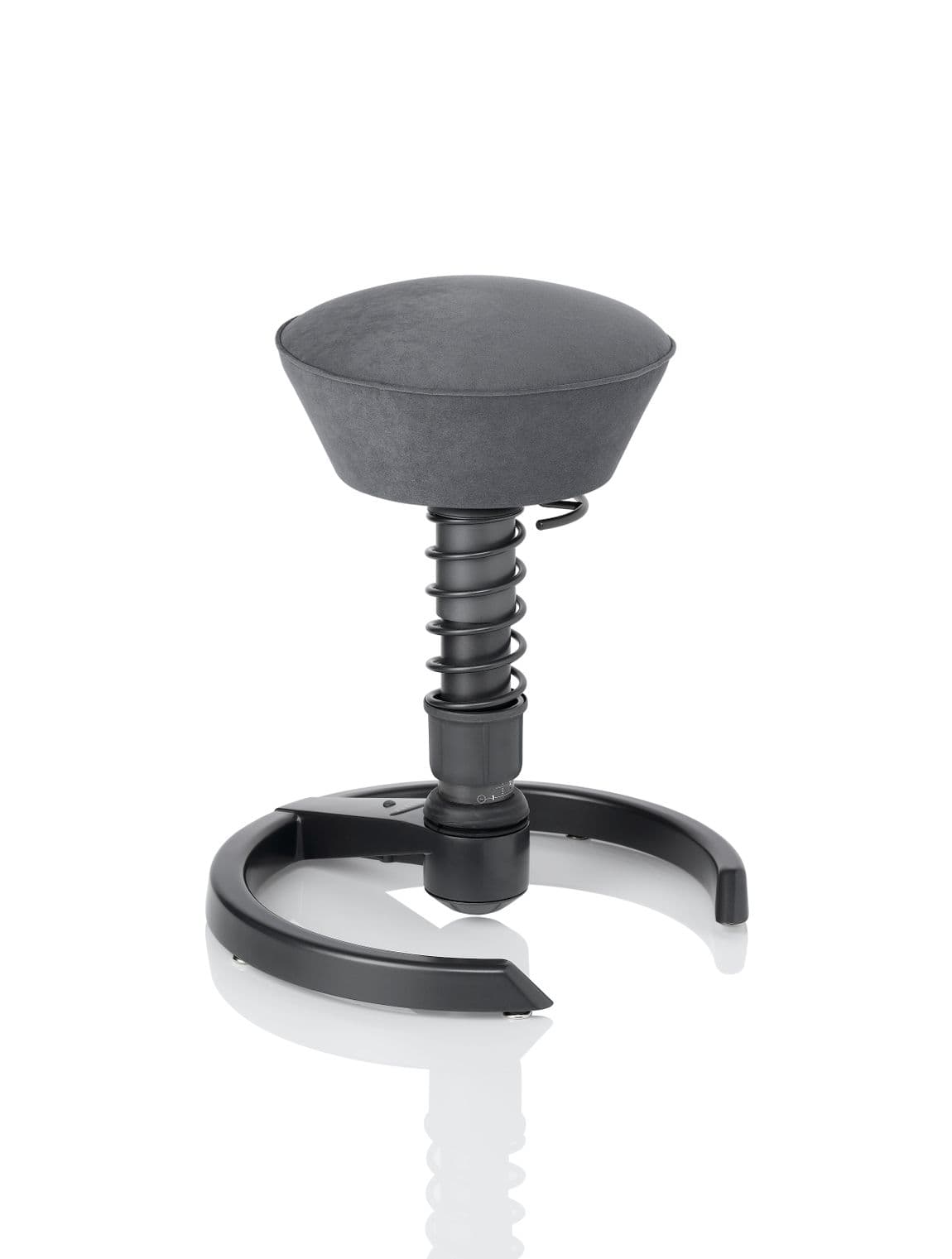 Engage your core throughout the workday and experience multi-dimensional movement with this unique, modern seating design for today's workplace! Color-coordinated ultrasuede seat cover and matching color springs: orange, blue and red. (gray and black ship with standard anthracite colored spring). This innovative motion seating design ships standard with anthracite base (charcoal gray). Custom Embroidering available for seat cushions (See Tesla Example under 'Details'). Not available with casters.