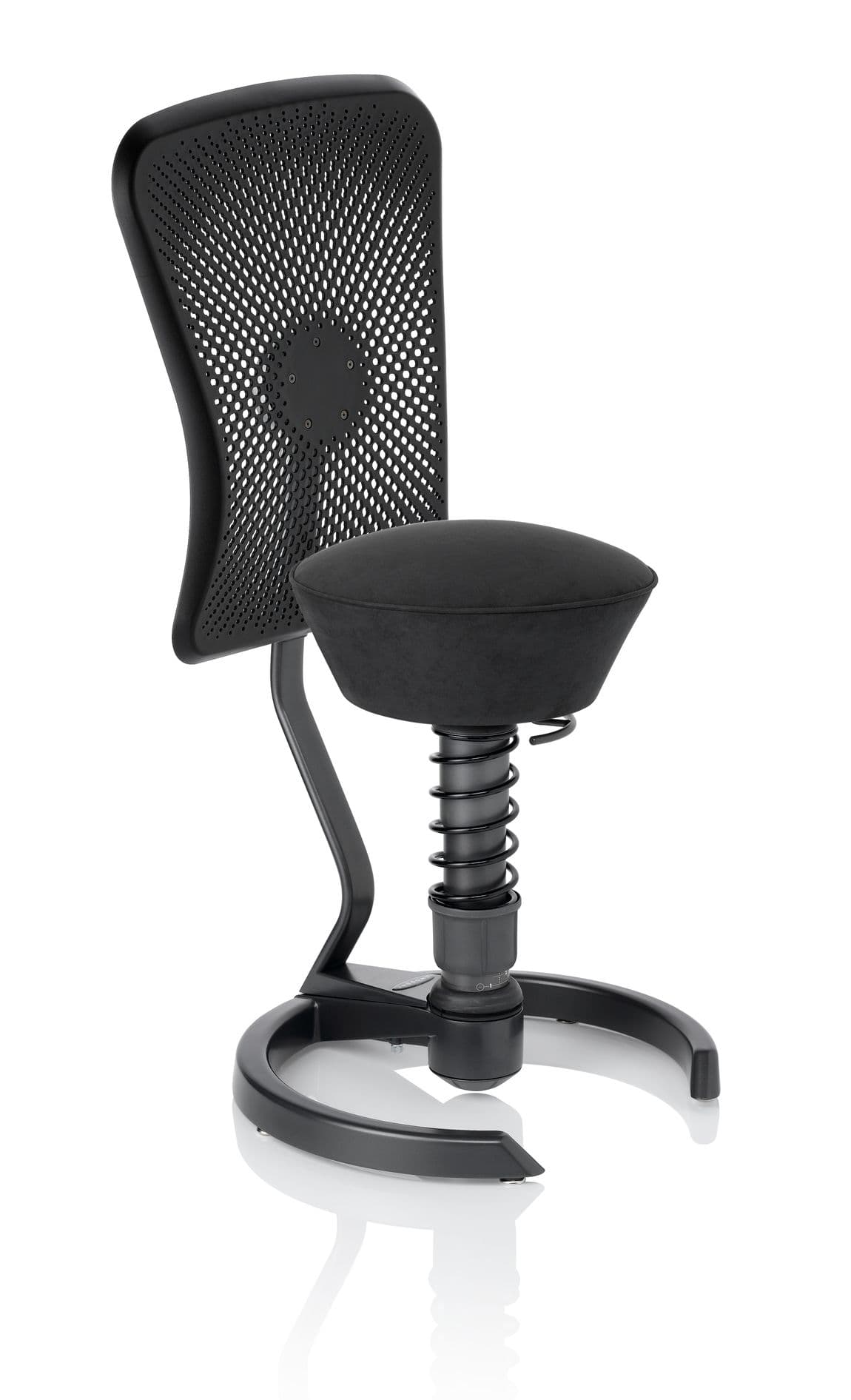 Engage your core throughout the workday and experience multi-dimensional movement with this unique, modern seating design for today's workplace! Color-coordinated ultrasuede seat cover and matching color springs: orange, blue and red. (gray and black ship with standard anthracite colored spring). This innovative motion seating design ships standard with anthracite base (charcoal gray). Custom Embroidering available for seat cushions (See Tesla Example under 'Details'). Not available with casters.