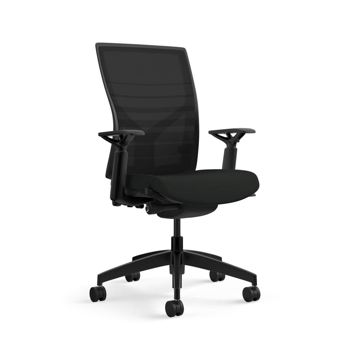 This modern task chair delivers cutting edge design, unrivaled comfort, adjustable lumbar support and seat depth adjustability all at a great value. Some additional features include: comfortable and durable mesh back, waterfall seat, 300 lb. weight capacity, lifetime warranty – 12 years for 24/7 use. This ergonomic office chair is one of our top selling seating designs and is a great cross over between open office workstation, private office desk and conference table seating.