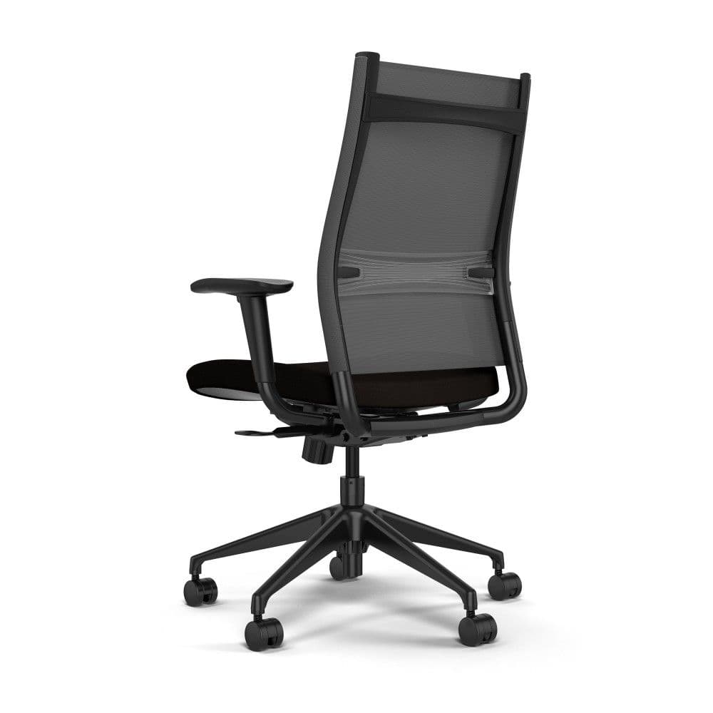 Adjustable lumbar support, height adjustable arms and multiple mesh colors are unexpected standard features given this surprisingly affordable and popular task chair. This smart task chair has a pull handle for easy mobility in collaborative environments. The midback and highback task chairs can be customized with black or silver accents, multiple mesh back colors and thousands of textiles for the upholstered seat. Choose armless, ­fixed, height adjustable or multi-adjustable (height/width) arms. Other options include a brushed aluminum base and seat depth adjustment. This fun and welcoming task chair was conceived with equal portions of design, comfort and value in mind, making this ergonomic chair perfectly suited for task, conference and collaboration environments for any business.