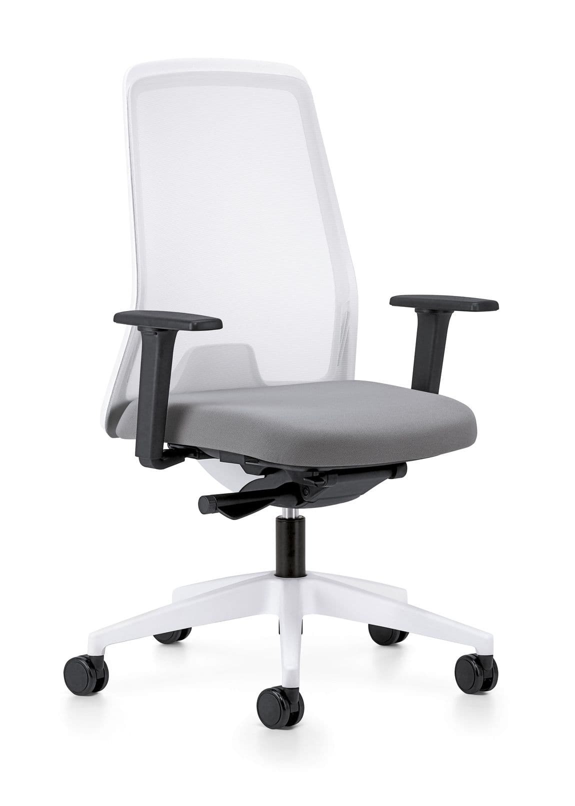 Born and manufactured in Germany, the EVERY task chair offers no compromise either in design nor functionality. The black or white backrest, with its clear line, is covered with a light and breathable mesh that contributes to excellent ergonomics features. As an option, the comfort of EVERY can be enhanced by a height adjustable lumbar support, seat depth adjustment, seat inclination, and multi-adjustable armrests.
