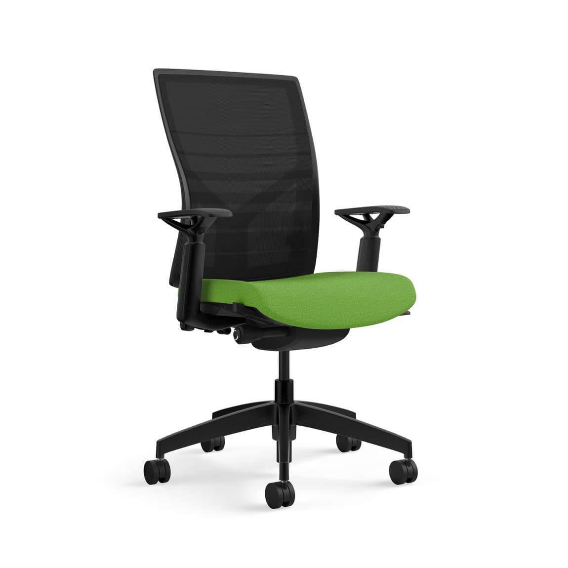This modern task chair delivers cutting edge design, unrivaled comfort, adjustable lumbar support and seat depth adjustability all at a great value. Some additional features include: comfortable and durable mesh back, waterfall seat, 300 lb. weight capacity, lifetime warranty – 12 years for 24/7 use. This ergonomic office chair is one of our top selling seating designs and is a great cross over between open office workstation, private office desk and conference table seating.