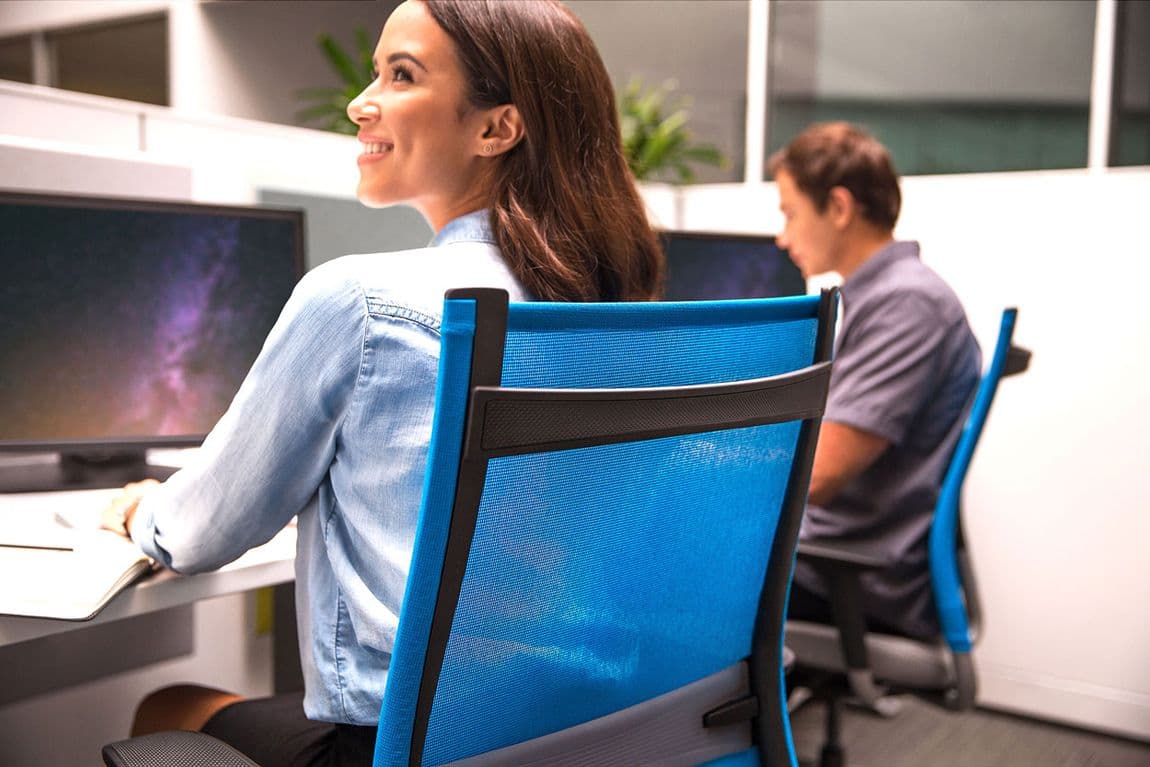 Adjustable lumbar support, height adjustable arms and multiple mesh colors are unexpected standard features given this surprisingly affordable and popular task chair. This smart task chair has a pull handle for easy mobility in collaborative environments. The midback and highback task chairs can be customized with black or silver accents, multiple mesh back colors and thousands of textiles for the upholstered seat. Choose armless, ­fixed, height adjustable or multi-adjustable (height/width) arms. Other options include a brushed aluminum base and seat depth adjustment. This fun and welcoming task chair was conceived with equal portions of design, comfort and value in mind, making this ergonomic chair perfectly suited for task, conference and collaboration environments for any business.
