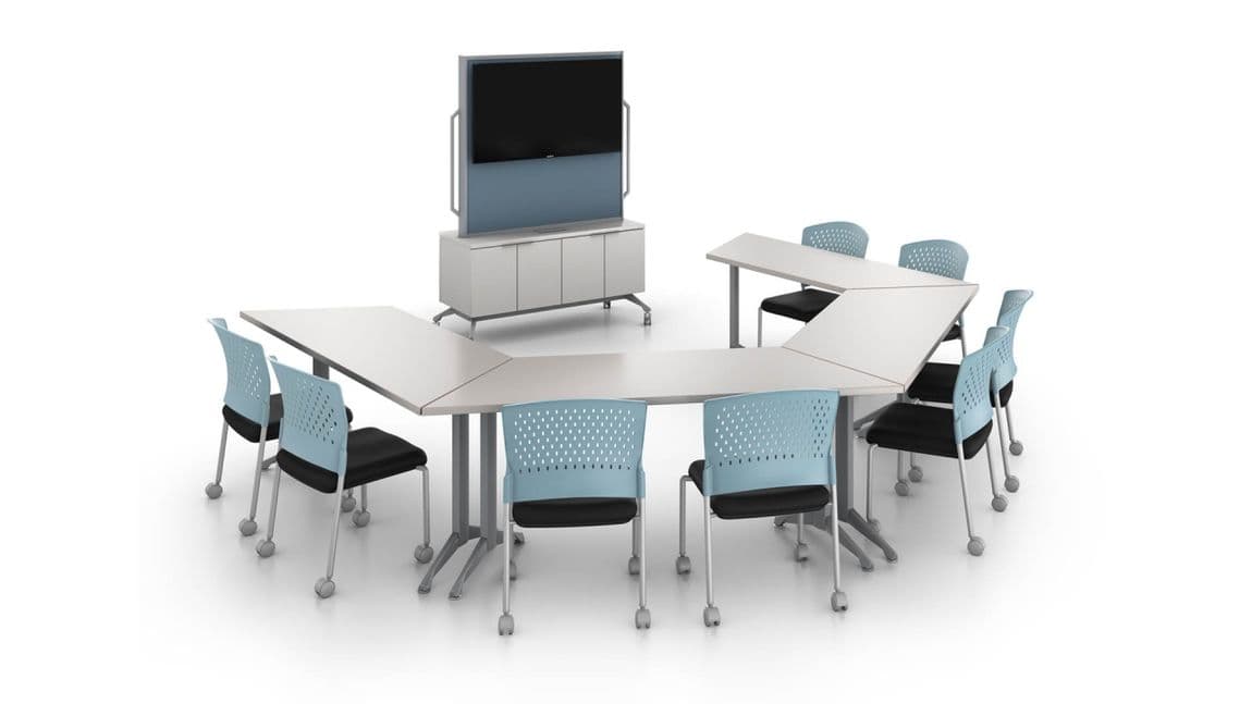 Every aspect this flexible office space and training table series was thoughtfully designed from striking vertical uprights to feet that create a subtle layered effect. The comprehensive collection includes all the accessories needed to outfit a space, from lecterns and mobile marker boards to conference tables and height-adjusted command centers. This multipurpose table design allows anyone to revamp their spaces in minutes, changing table functions and layouts to empower group work or lectures whenever needed.