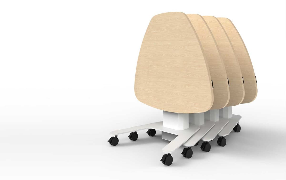 This table design’s unique, individually-sized flower petal shape allows for quick room reconfiguration from training rows to round huddle groups. Sanitize, nest and stow away when not in use.