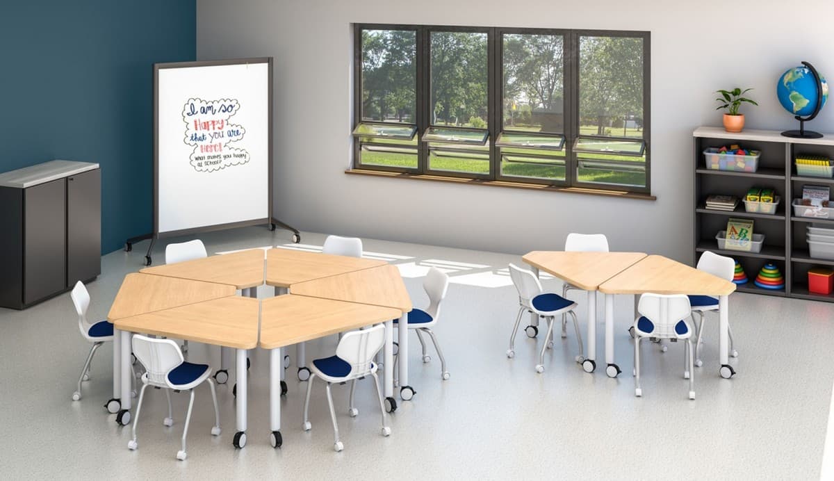 Every aspect this flexible office space and training table series was thoughtfully designed from striking vertical uprights to feet that create a subtle layered effect. The comprehensive collection includes all the accessories needed to outfit a space, from lecterns and mobile marker boards to conference tables and height-adjusted command centers. This multipurpose table design allows anyone to revamp their spaces in minutes, changing table functions and layouts to empower group work or lectures whenever needed.