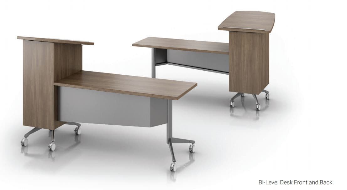 Every aspect this flexible office space and training table series was thoughtfully designed from striking vertical uprights to feet that create a subtle layered effect. The comprehensive collection includes all the accessories needed to outfit a space, from lecterns and mobile marker boards to conference tables and height-adjusted command centers. This multipurpose table design allows anyone to revamp their spaces in minutes, changing table functions and layouts to empower group work or lectures whenever needed.